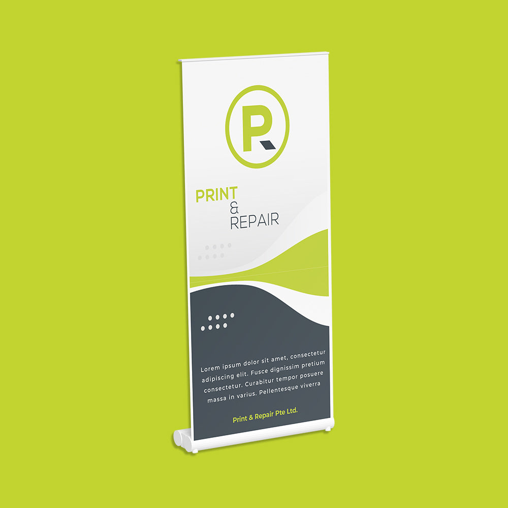 High Quality pull up system with printing from our latex printer that suits your outdoor advertisement needs. Able to retract and keep in a bag.